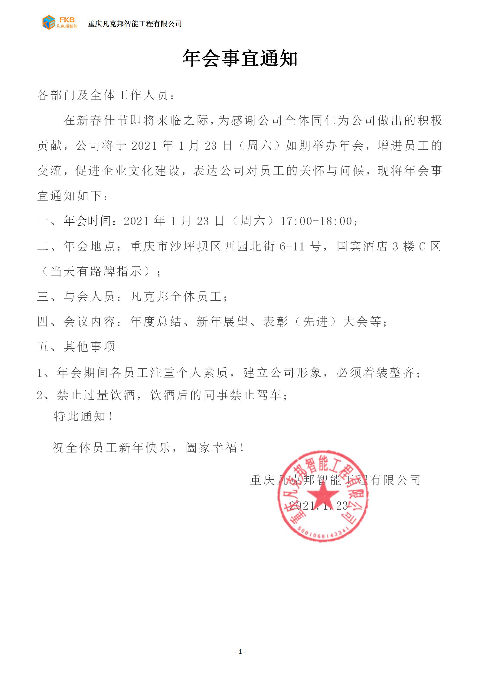 在新春佳節(jié)即將來臨之際,為感謝公司全體同仁為公司做出的積極貢獻(xiàn),公司將于2021年1月23日(周六)如期舉辦年會,增進員工的交流,促進企業(yè)文化建設(shè),表達(dá)公司對員工的關(guān)懷與問候,現(xiàn)將年會事宜通知如下: