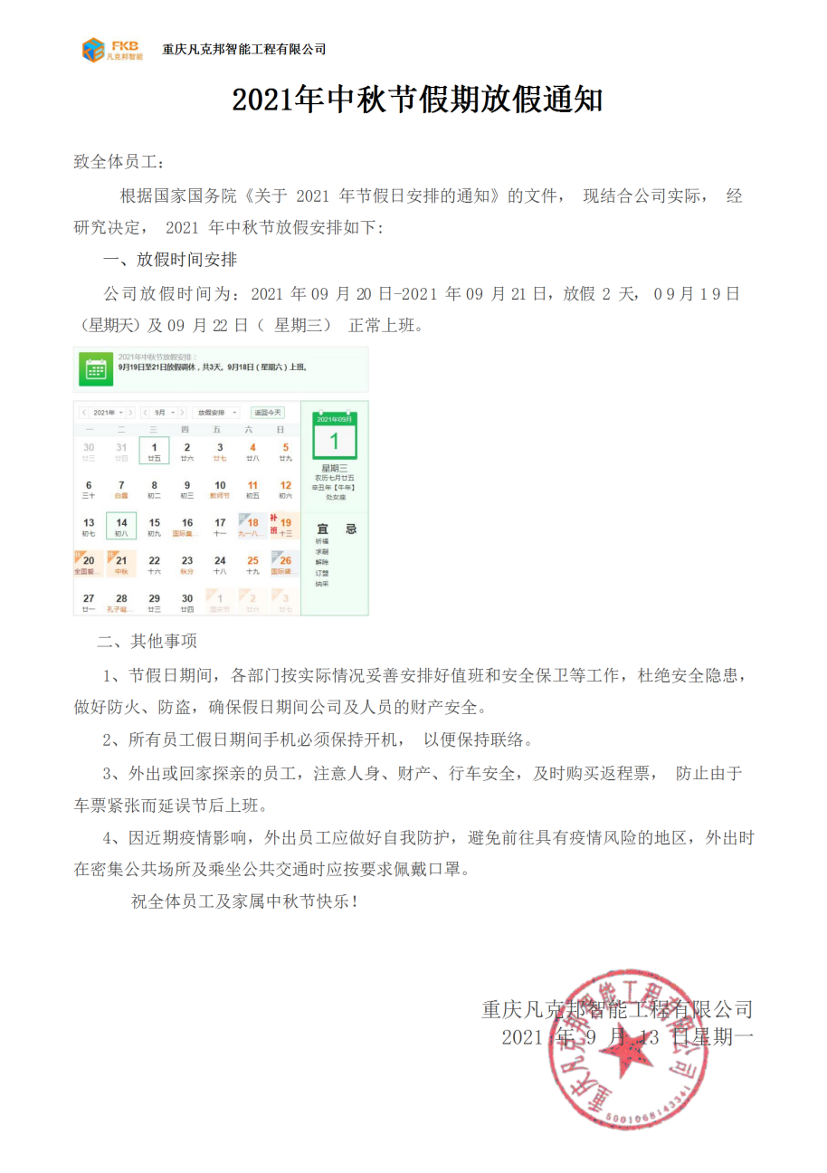 2021年中秋節(jié)假期放假通知