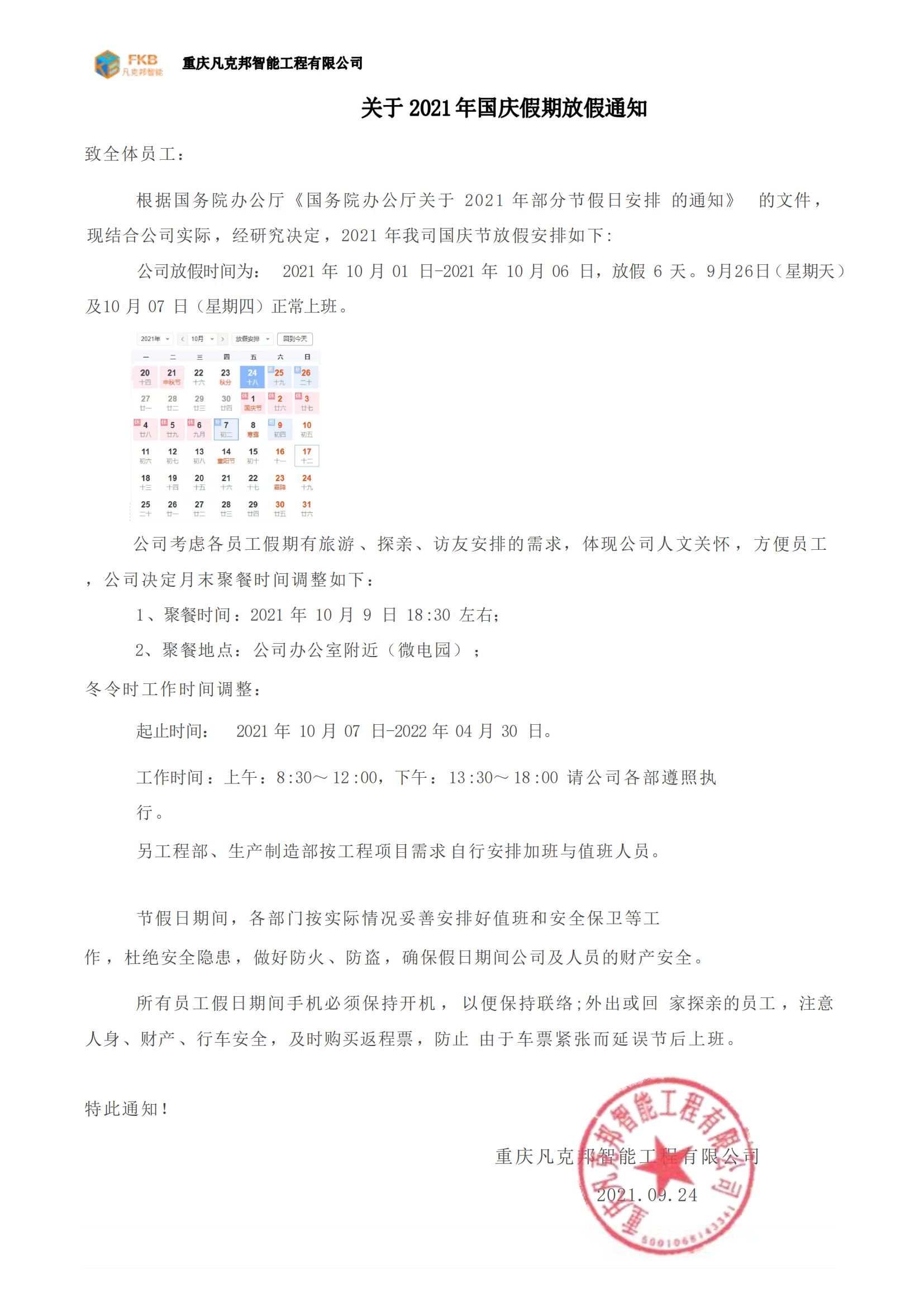 2021年國慶節(jié)放假通知